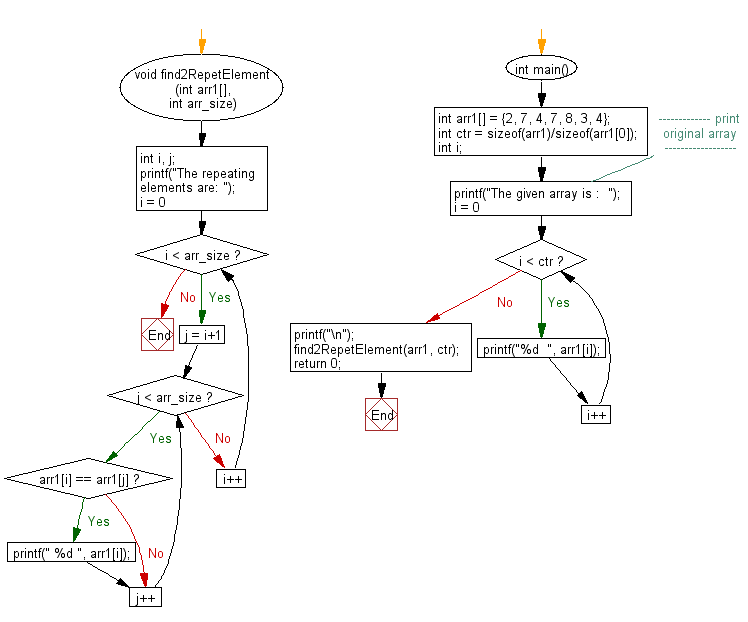 - Write a C program to find the two repeating elements in an array using sorting and then comparing adjacent elements.