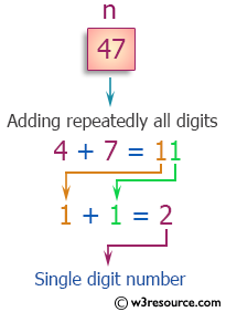 Initial number is 12, Single digit number is 3. Initial number is 47, Single digit number is 2.
