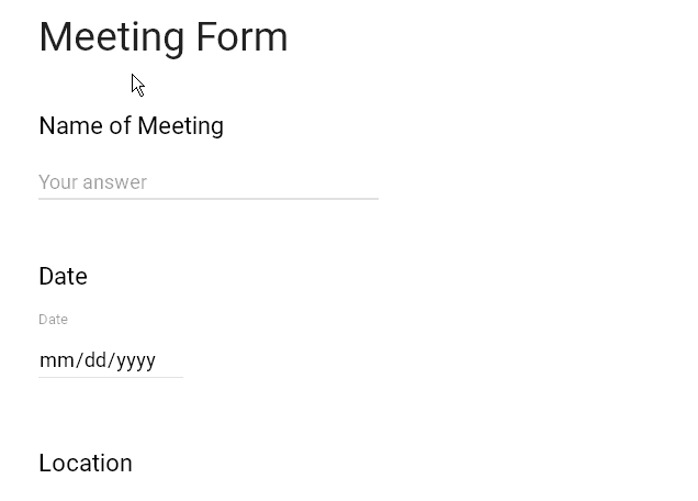 The purpose of this form is to collect information regarding meeting attendee. You may see this is how the form looks :