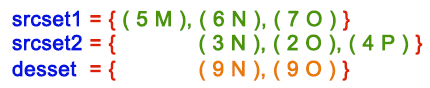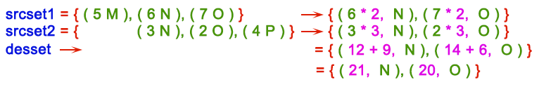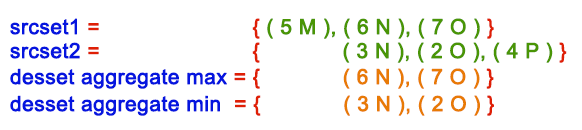 127.0.0.1:6379> ZADD srcset1 5 M 6 N 7 O (integer) 3 127.0.0.1:6379> ZADD srcset2 3 N 2 O 4 P (integer) 3 127.0.0.1:6379> ZINTERSTORE desset 2 srcset1 srcset2 AGGREGATE MIN (integer) 2 127.0.0.1:6379> ZRANGE desset 0 -1 WITHSCORES 1) "O" 2) "2" 3) "N" 4) "3" 127.0.0.1:6379> ZINTERSTORE desset 2 srcset1 srcset2 AGGREGATE MAX (integer) 2 127.0.0.1:6379> ZRANGE desset 0 -1 WITHSCORES 1) "N" 2) "6" 3) "O" 4) "7"