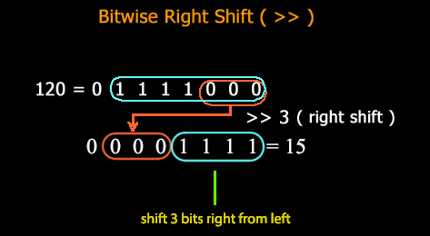 SELECT 120 >> 3 AS "Bitwise Right Shift";