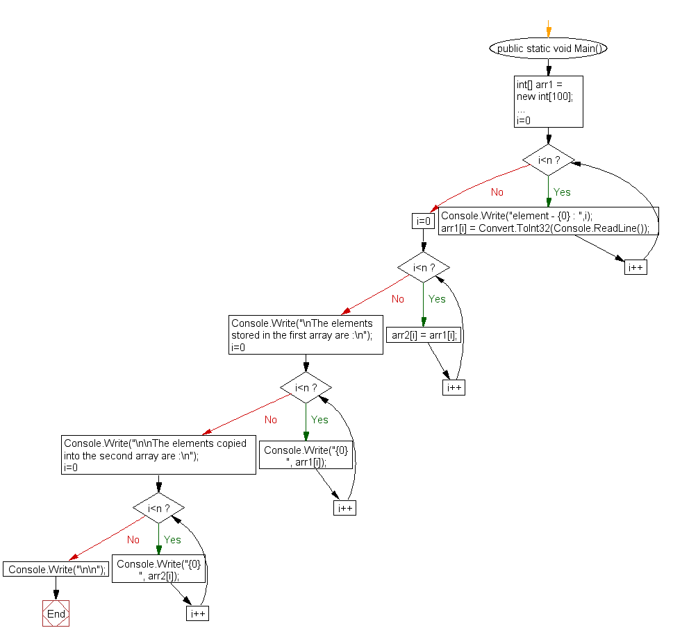 Console.Write("\n\nCopy the elements from one array into another array:\n");