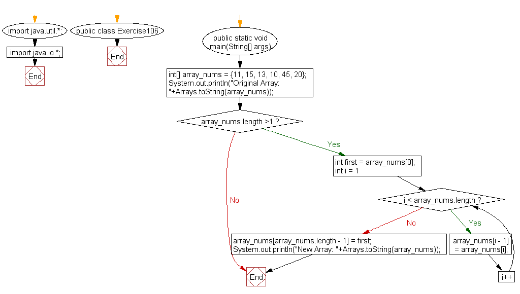 Original Array: [11, 15, 13, 10, 45, 20] New Array: [15, 13, 10, 45, 20, 11]
