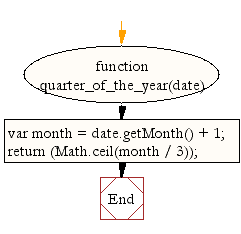 - It calculates the quarter of the year by dividing the month by 3 and rounding up to the nearest integer using "Math.ceil()".